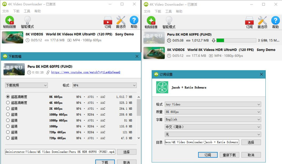 4K Video Downloader(4K视频下载器)油管高清视频下载利器,可提取视频字幕和音乐,智能下载高清画质视频,一键下载字幕,订阅YouTube视频,下载所有油管频道及列表。它是一款支持中文的YouTube高画质视频下载工具,只要复制视频网址,就可以下载YouTube, Vimeo, SoundCloud, Flickr, Facebook, DailyMotion等网站的视频文件,下载时可以选择8K, 4K, 2K, 1080p, 720p, 480p, 360p, QCIF等视频清晰度。