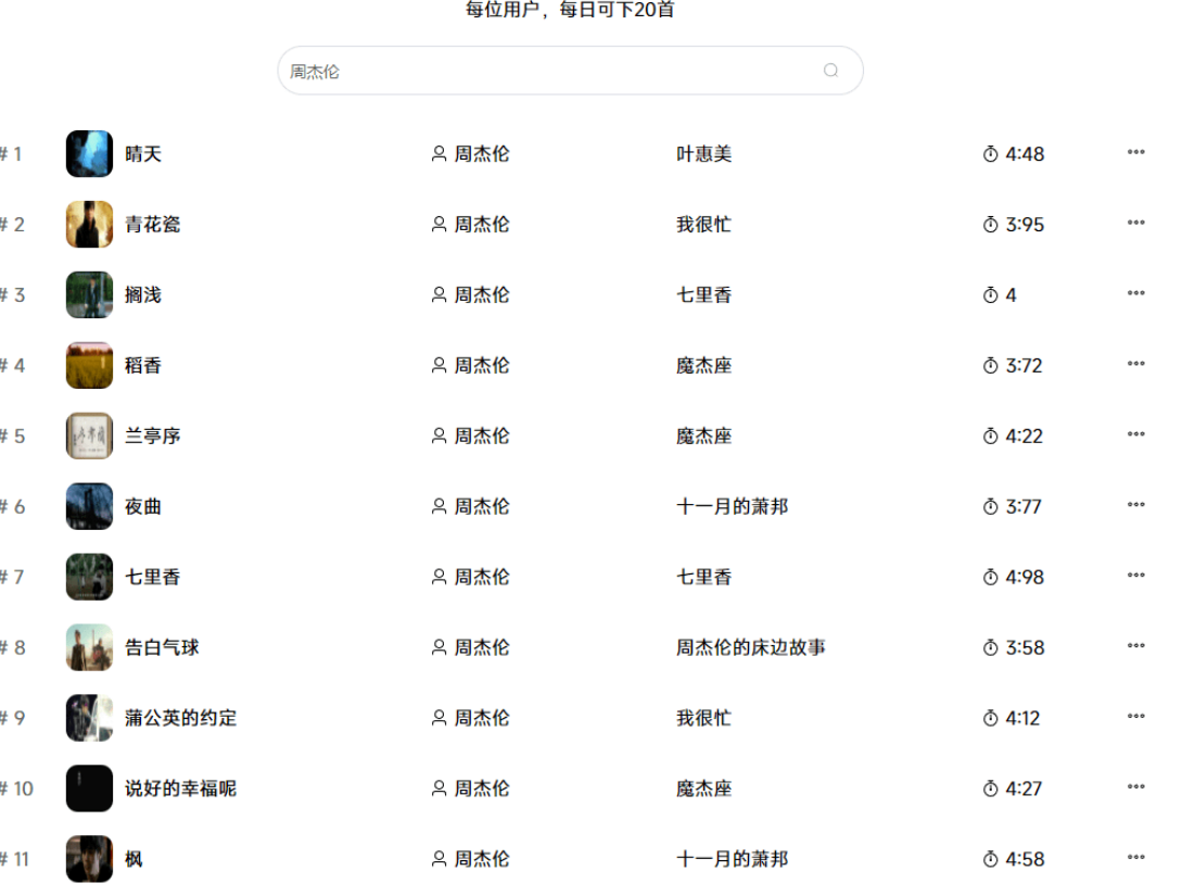 - 免费网站,每日限制20首,够用