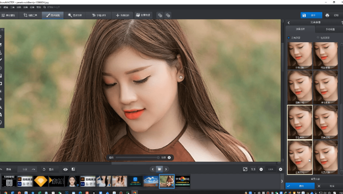 - 可以一键美颜、人物形象调整、瘦腰、丰胸、拉大长腿等
