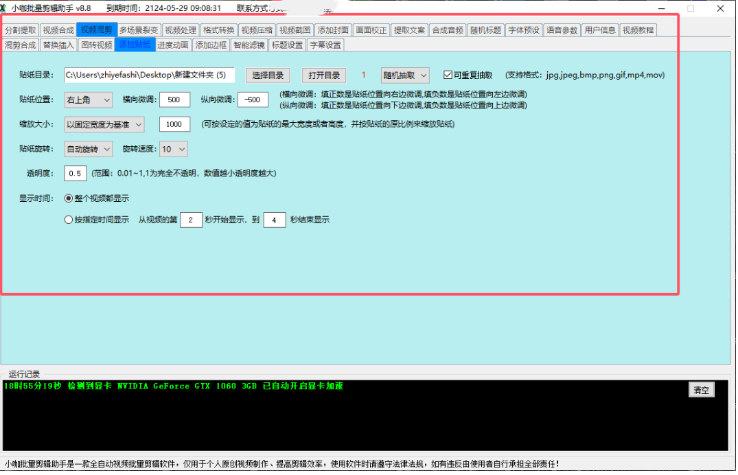 5. 视频处理:可以根据用户设置的参数和勾选的功能来自动化批量处理视频,给每个视频添加对应的处理效果