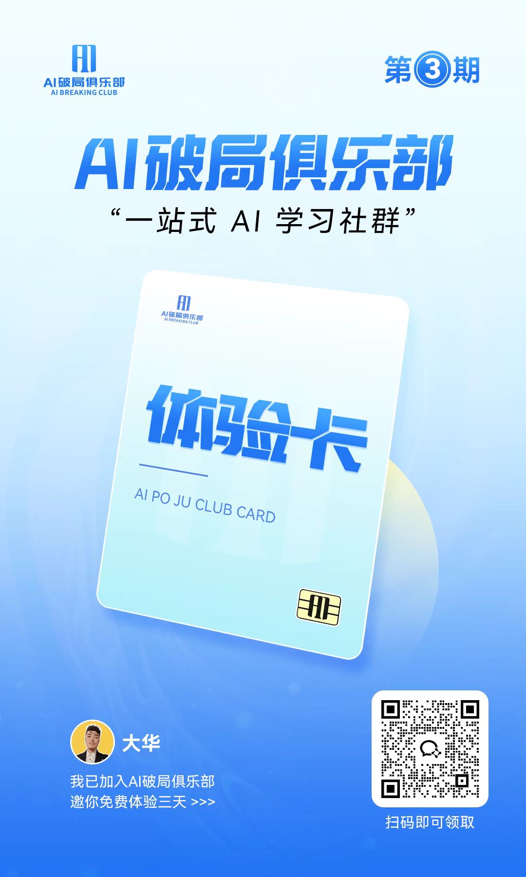 对AI和破局不感兴趣的,三天体验不说话不学习的,打酱油的不要扫码添加,浪费名额会永久禁止加入!